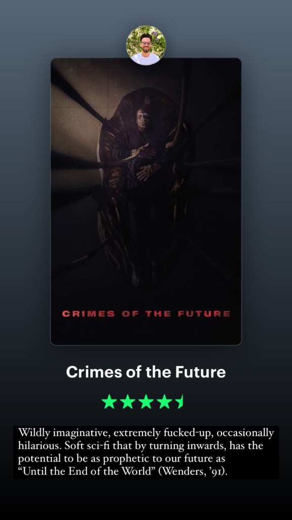 A masterful subversion of expectations, pairing Nicholas Cage to a gritted-teeth tale of swine reclamation, but never throwing a punch (even though some are received). Slyly presented as courses of a single meal, there’s ample time for pleasant dinner conversation about the power of food and the importance of love.