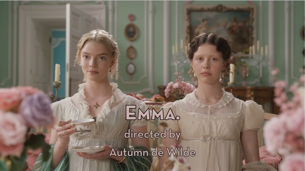 Macaroon pastels coat every frame of this photoshoot-in-motion. The umpteenth Jane Austen adaptation, Emma. succeeds by sticking to period but modernizing its tone. Unabridged dialogue sings when it’s married to anachronistic comedic timing. More a romp than a deep romance, the source’s costume stuffiness has opportunity to breath when focused on the quivering tics of awkward stately etiquette.