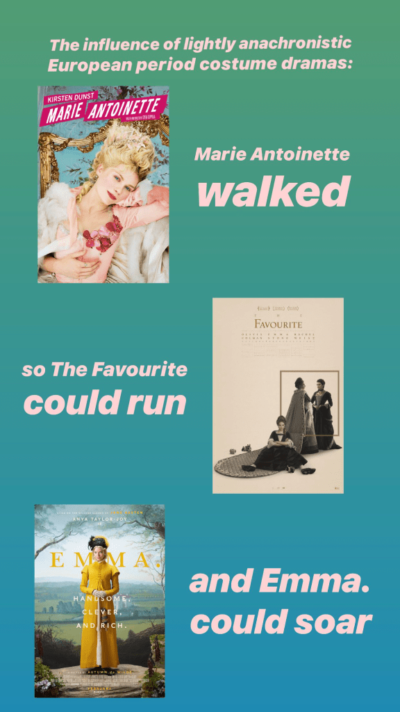 A daunting task no one was asking for: breathe fresh life into an oft-remade, classic text. How could Gerwig ever succeed? Start with an attempt to reconcile a long-vilified character by drawing out an incredibly convincing, age-spanning performance by Florence Pugh’s “Amy.” Next, update the film language, taking advantage of distinctive color grading and digital cross-cutting to freewheelingly jump between past and present and fold the story’s two-act structure upon itself. Finally, challenge the story’s classical happy ending with a framing device of Saoirse Ronan’s “Jo,” standing in for Louisa May Alcott, standing in for Gerwig herself, fighting the attitudes of what could be expected of a woman in fiction at the time. In the moment, it reads as a brilliant meta commentary by Gerwig on her own place in the still male-dominated film industry, but what’s real, what’s the fiction falls away when we’re left with the final shot of the film: a woman holding a work of her own creation. It’s something she asked for.